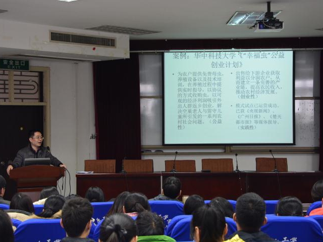本次会议分为“挑战杯”竞赛动员会和实习实践交流会两部分。在“挑战杯”竞赛交流会中,2014年“创青春”金奖获得团队代表王帅和大家分享了比赛经验,并对即将参赛的同学提出宝贵的建议。接下来,创业类金牌导师郑瑾老师带领大家回顾了纺织学院以前取得的荣誉,并由“为什么要参加课外实践”这个问题展开对“挑战杯”赛制内容及经典案例的讲解和分析;从学生和老师两个角度阐述了参与挑战杯及最后获奖对其本身的意义。最后郑老师从“选题”、“团队”和“投入时间”三个方面详细剖析了参赛获奖的关键点,在场同学受益良多,掌声连连,气氛十分热烈。