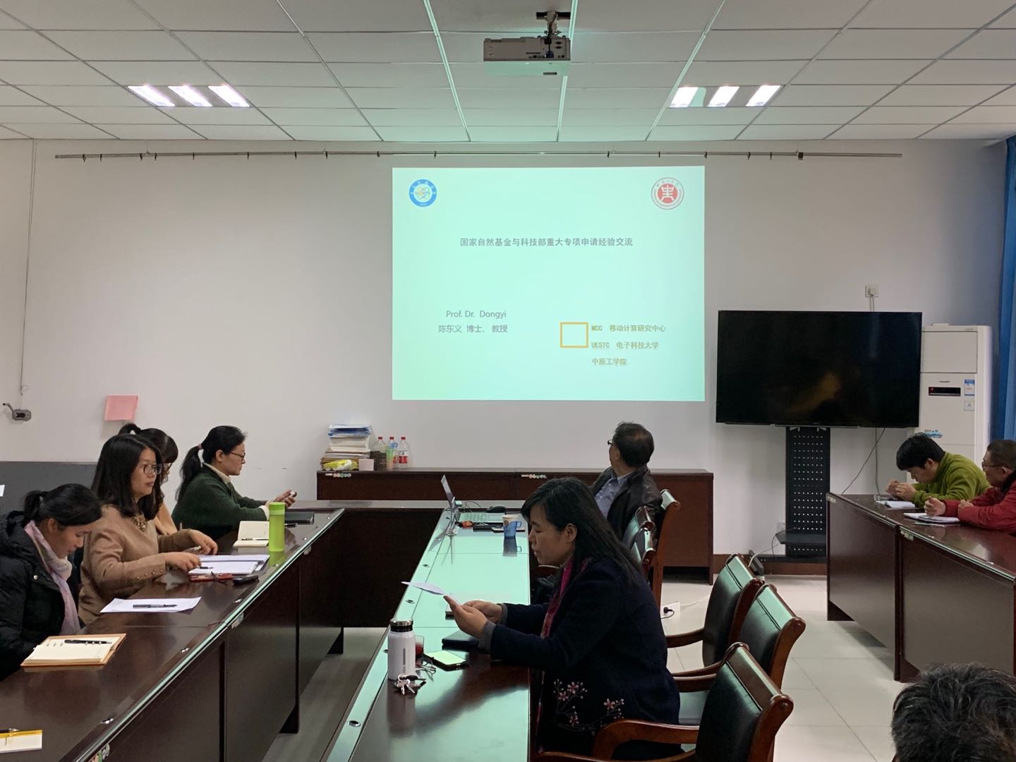 2018年11月30日上午,电子科技大学陈东义教授应邀为我院师生作了题为“国家自然基金与科技部重大专项申请经验交流“的学术讲座。会议由我院院长杨红英教授主持,40余名师生参加了此次报告会。