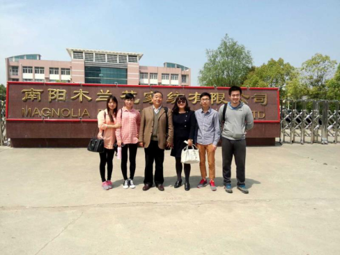 2017年4月21日,纺织学院聂建斌教授、纺织工程系主任卢士艳老师赴南阳木兰花家纺有限公司实习基地看望学生。