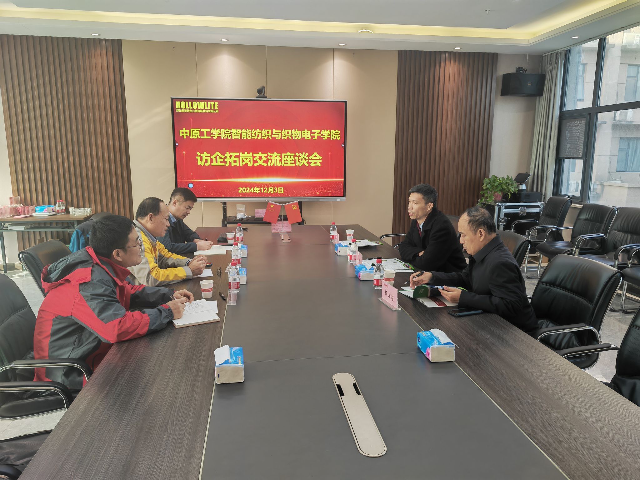 12月3日,WilliamHill中文党委书记杨磊、党委副书记杨方超、纺织实验中心主任魏朋博士赴郑州圣莱特空心微珠新材料有限公司开展访企拓岗促就业活动。郑州圣莱特空心微珠新材料有限公司总经理王建斌、人力资源部长许卫涛、河南海德薇节能科技有限公司总经理司政凯博士等企业负责人参加活动。
