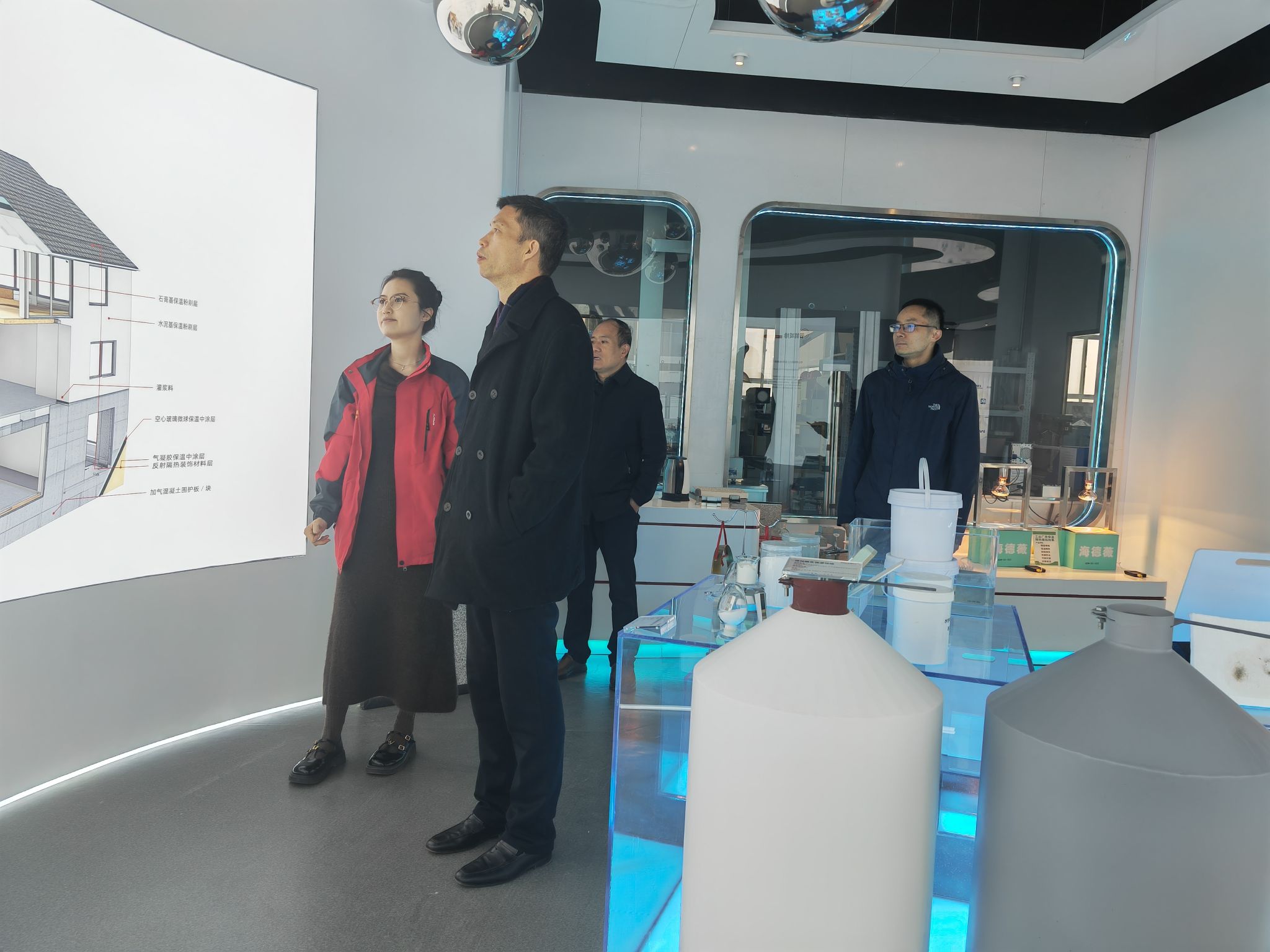 在许卫涛的陪同下,杨磊一行参观了公司产品展示中心,观看了圣莱特宣传视频,深入了解空心玻璃微珠作为功能性前沿新材料,在纺织印刷、航空航天、军事海洋、电子信息、新能源汽车、节能减碳和油气田开发等领域的广泛应用。