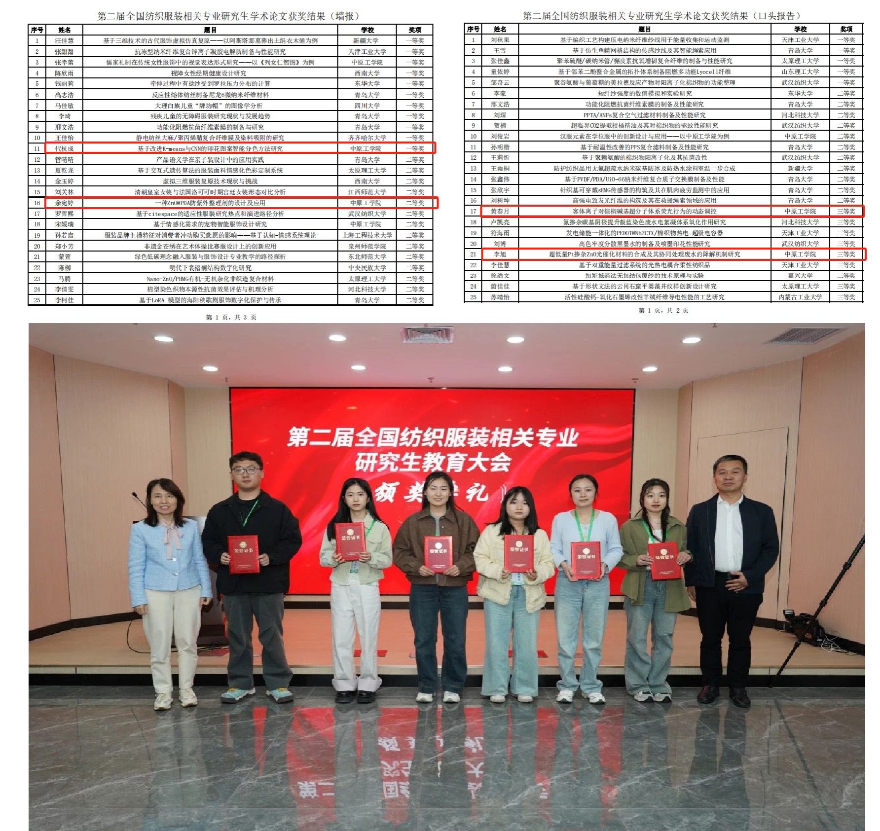 近年来,学院深入落实新时代高等教育高质量发展要求,始终将纺织科学与工程学科研究生培养置于核心地位,推动研究生教育教学与科技前沿、行业需求的精准对接,促进学生创新思维与实践能力的协同发展,全面提升我院研究生的学术水平与综合素养。未来,学院将继续优化培养机制,加大资源投入,为研究生的成长与发展提供坚实保障,推动纺织服装领域的科研与教学工作迈向更高水平,为相关行业培养更多高素质专业人才。(通讯员:李旭)