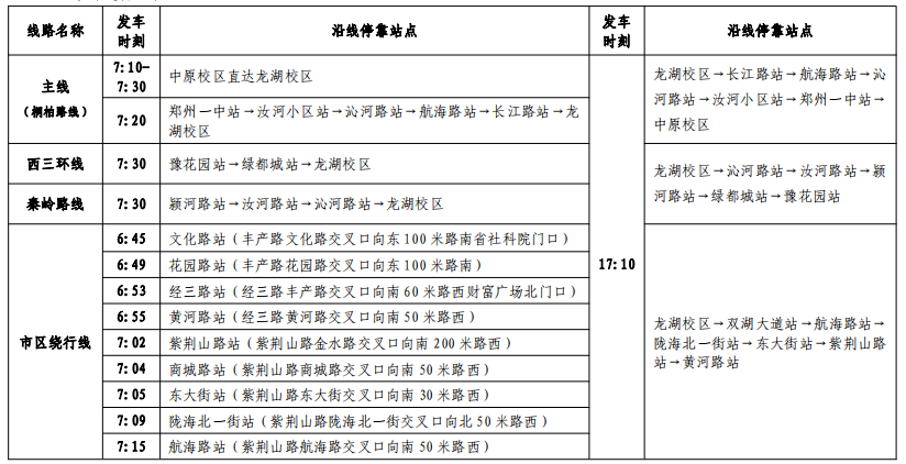 2.工作日各环线班车正常运行,休息日按规定班次、线路运行,请提前到站候车。