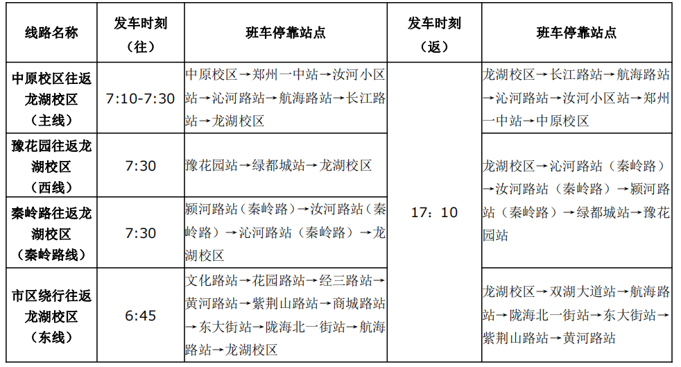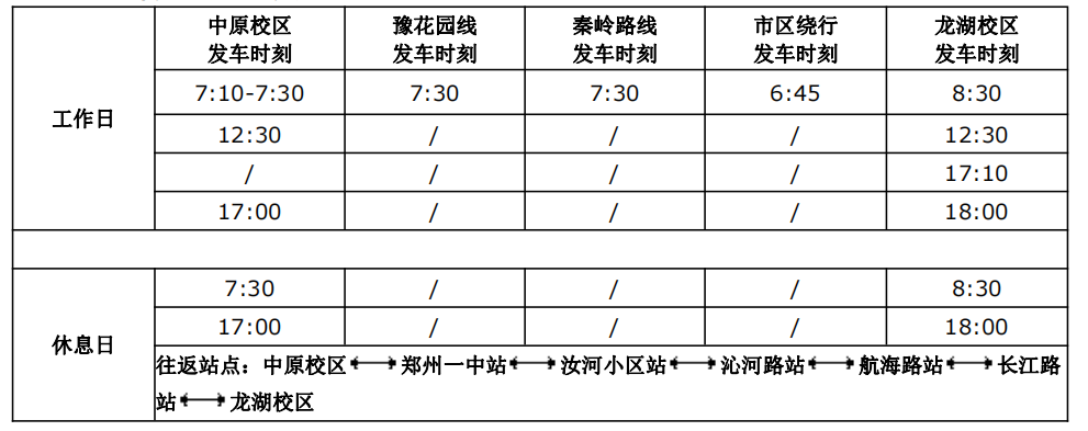 1.工作日各环线班车正常运行,休息日按规定班次线路运行;班车仅保障在岗教职工上下班时乘车。
