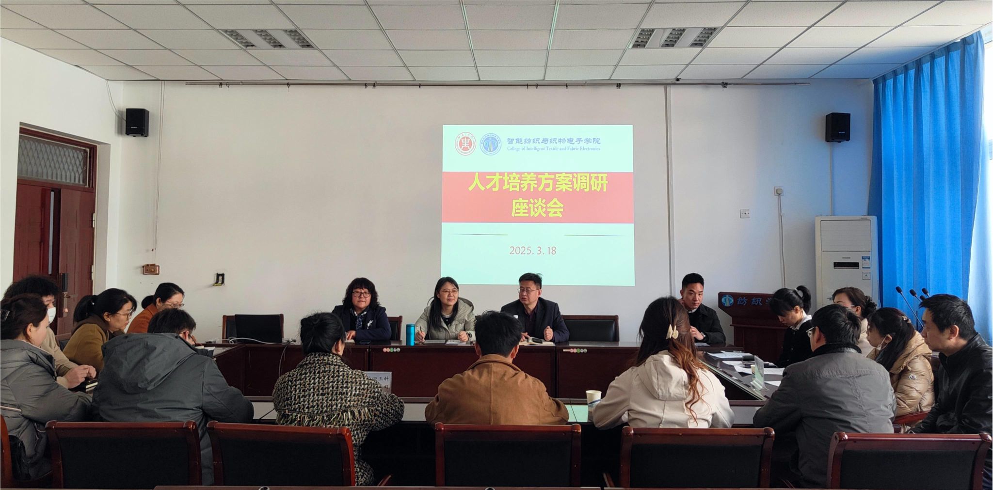 改革实践获赞,共商育人良策。党委书记吕继东主持座谈会时指出,在"新工科"建设背景下,深化校企协同是培养产业急需人才的关键路径。院长杨红英介绍了学院近几年人才培养改革与实践,邀请企业深入参与"项目教学+产业导师+双创实践"的特色育人模式,校企合作更新教材,并提出进一步深化在校生的校企共育、毕业生的职业发展跟踪反馈机制。与会企业高度评价学院育人成果,特别是赞誉学生专业基础扎实,动手能力强,岗位适应快。同时,企业代表从行业发展新趋势和企业人才需求出发,就人才培养目标、智能纺织课程、绿色制造技术、复合型人才培养等提出具体建议,为我院人才培养方案修订注入产业智慧。