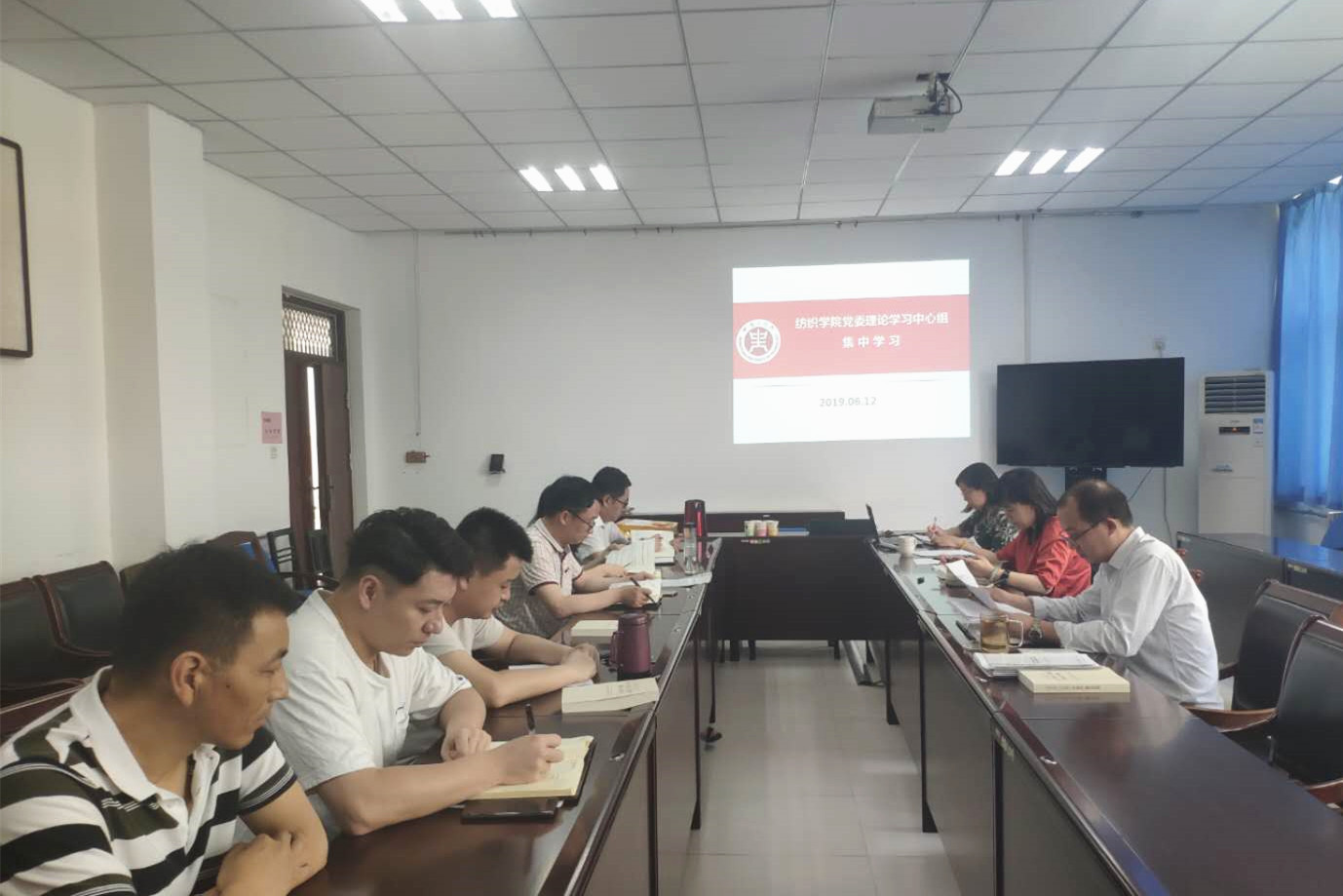 6月12日下午,纺织学院在会议室组织学院党委理论学习中心组集中学习,刘伟同志主持学习会。