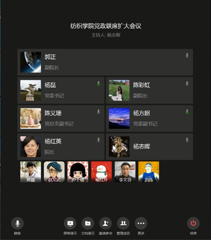 8月15日,我院召开党政联席扩大会议。原纺织学院党委书记刘伟、副书记赵文武、副院长喻红芹、办公室主任陈义珊以及新一届领导班子成员、党委委员、工会主席参加会议。会议由纺织学院杨红英院长主持。