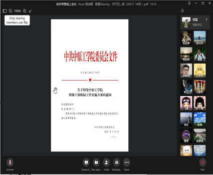 杨磊书记对本次学校科级岗位设置和纺织学院科级岗位设置情况进行说明,并对岗位的任职条件逐一进行了解读和说明。杨书记围绕科级干部换届流程、时间节点、岗位申报材料的注意事项以及材料的提交方式做了详细说明。