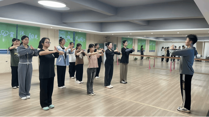 6月13日上午,传统武术研习活动正式启动。开幕式上,学院团委负责人致辞,强调传统武术是中华文脉的重要组成部分,希望同学们通过研习习得技艺的同时,领悟“尚武崇德”的精神内核。随后,武术教练团队结合基础拳法、太极招式,为同学们讲解武术的起源与发展,细致演示冲拳、踢腿、扎马步等动作要领,从站姿、手型等基础细节入手,耐心指导每一位参与者。