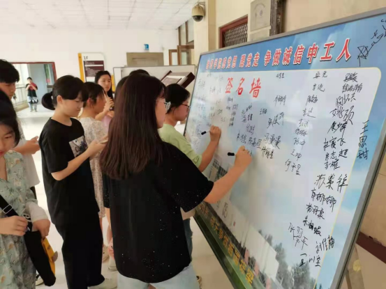 诚信是中华民族的传统美德,为了进一步践行社会主义核心价值观,更好地弘扬诚信文化,培养学生重信守义的诚信美德,2021年6月22日,纺织学院组织全体20级学生在2号组团楼一楼大厅进行了“感党恩,跟党走,争做诚信中工人”诚信签名活动。签名现场气氛活跃,大家知道了诚信的重要意义以及对失信的惩罚,表示一定要从诚信学习、诚信待人、诚信做事等身边小事做起,时时诚实、处处守信,为构建诚信社会做出自己的贡献。