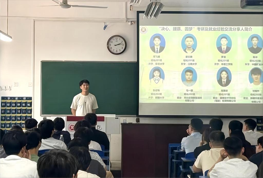 5月23日,纺织学院轻化工程系为帮助大学生扫清考研和就业面对的困惑与迷茫,明确未来发展目标与方向,举行了考研及就业经验交流分享会。轻化工程系全体专业教师、2020级8名优秀毕业生和近100名2021级、2022级、2023级大学生参加了此次活动。
