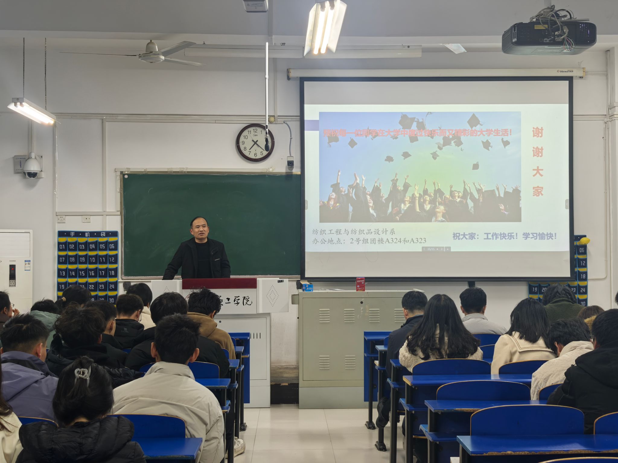 12月10日,为加强2024级大学生高校适应性转型教育,树立优良学风,助力大学生扣好大学生涯第一粒扣子,学院开展了“‘纺’天地经纬 ‘织’人间锦绣”大学生高校适应性转型教育。学院副院长卢士艳,纺织工程系主任梅硕、副主任杜姗、尹云雷,顾龙鑫博士及全体2024级纺织工程专业学生参会。大会由学院党委副书记杨方超主持。