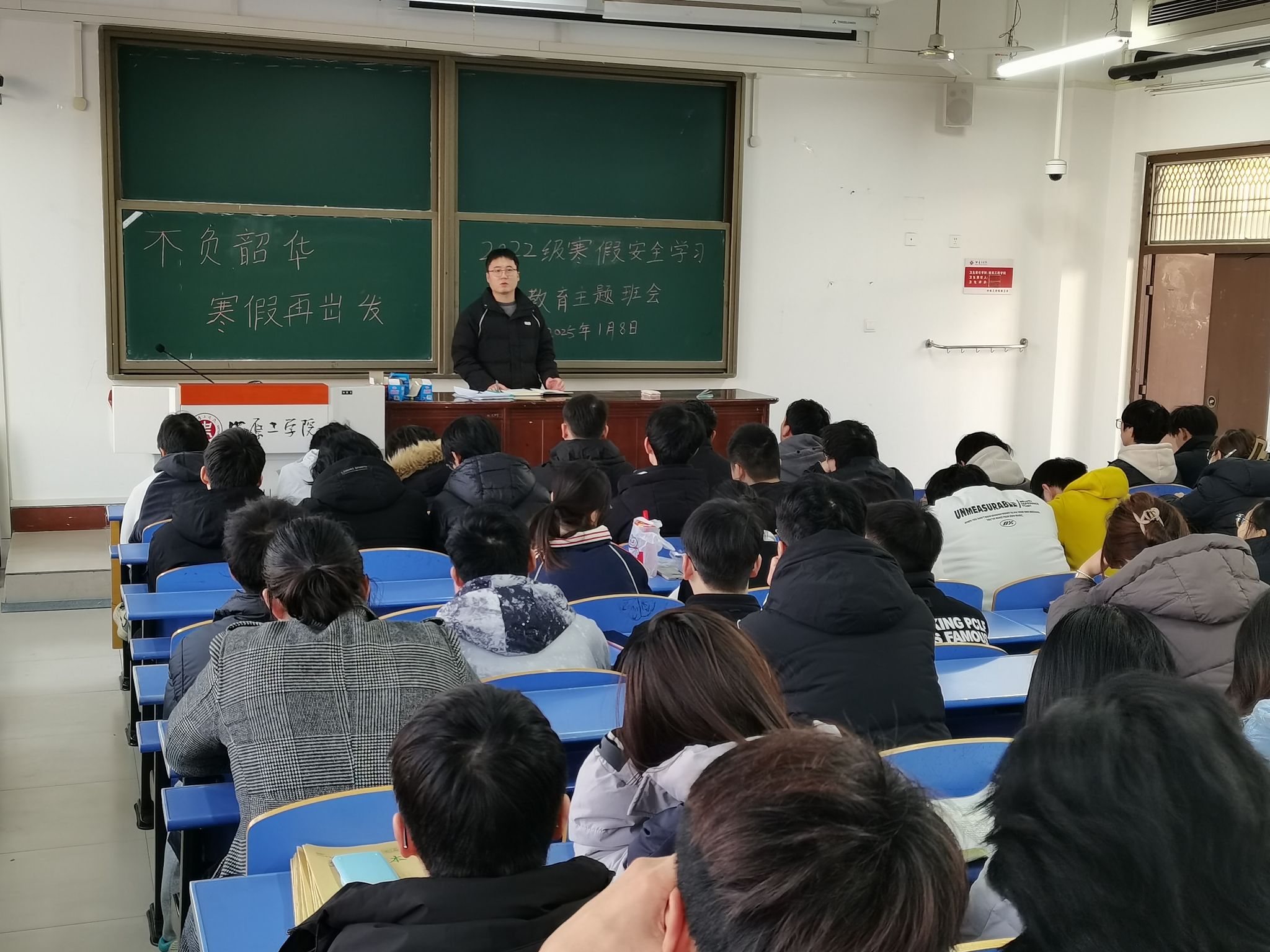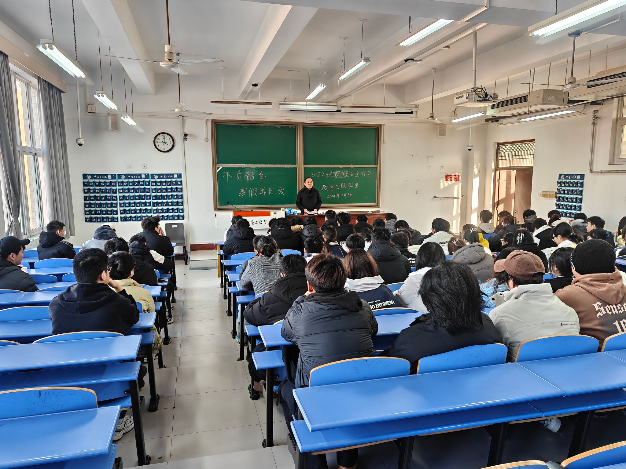 1月8日、9日,WilliamHill中文为帮助学生度过一个平安、愉快、充实、有意义的假期,在3#教学楼505、333教室分别召开学生寒假安全教育会议。学院党委副书记杨方超、辅导员丰高瑞及全体大三学生参会。
