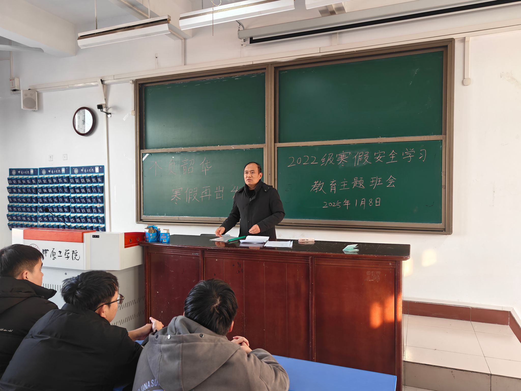辅导员丰高瑞嘱咐学生,安全第一,警钟长鸣,无论在家还是外出,都要时刻注意自己的安全,寒假虽然短暂,但它是积蓄力量的重要时期,希望大家能够放弃游戏、放弃懒惰,珍惜这段时光,合理规划、充实度过,以更加饱满的热情和更加坚定的信心迎接美好的明天。(通讯员 杨娟娟 丰高瑞 )