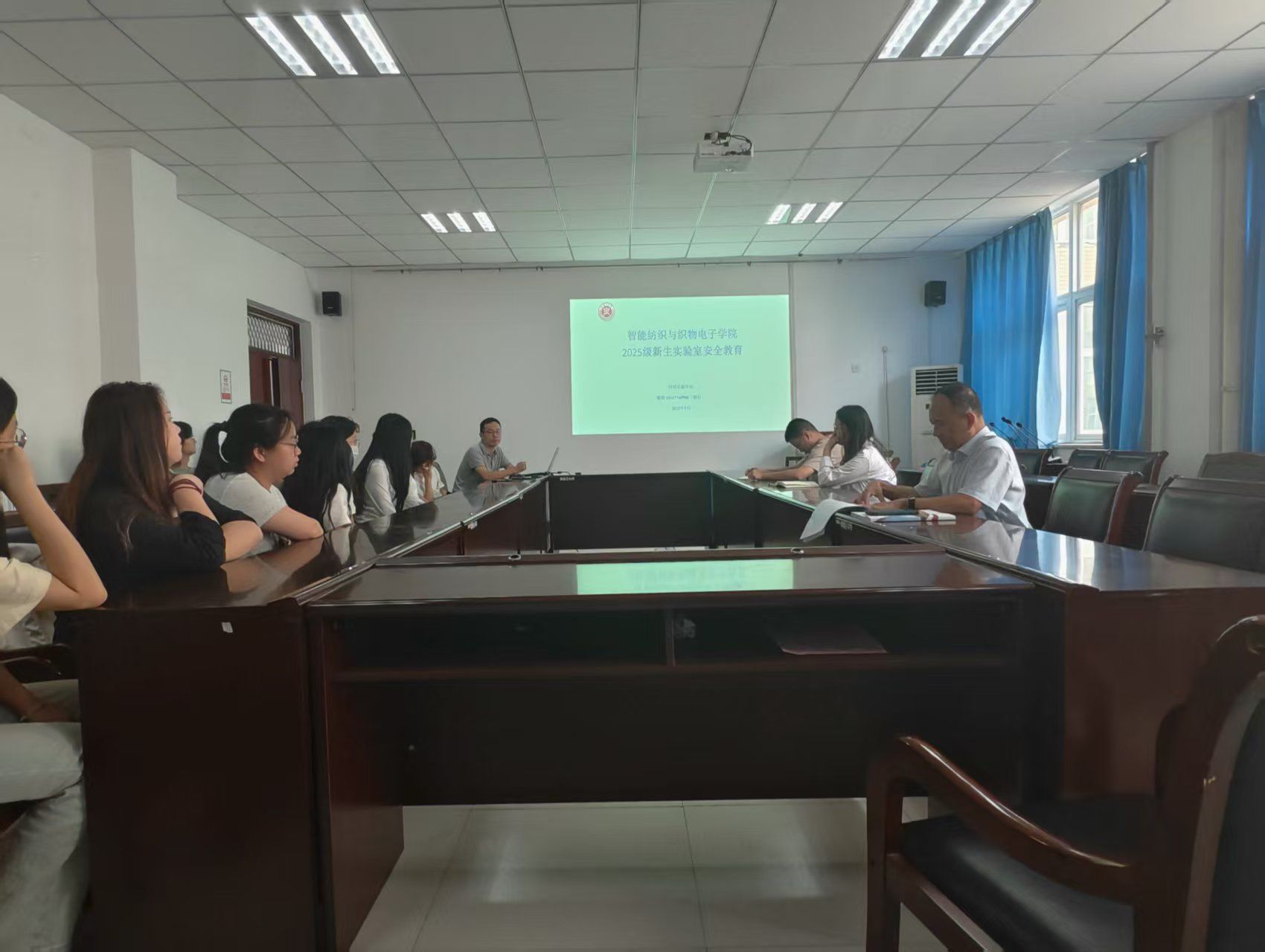 见面会上,郭正首先向新生们表示热烈欢迎,系统介绍了学院学科优势、师资力量与科研平台,就研究生培养方案、学籍管理及安全教育等方面做出详细讲解。杨方超鼓励新生积极适应身份转变,夯实理论根基,强化创新能力,主动融入科研实践,以解决现实管理问题为导向,努力成长为兼具学术素养与实践能力的复合型高层次人才,勉励同学们勇攀学术高峰,成为有理想、有担当的纺织人。研究生秘书任春雷、朱瑞淑结合研究生培养方案、生源地助学贷款受理、国家助学金发放资格审核、奖学金评选等重要工作,向新生们详细讲解了学校研究生的奖助政策,激励新生在研究生阶段努力学习、勇于创新,凭借自身的优异表现争取获得更多的支持与奖励,助力学业发展,并就请销假制度、宿舍管理、违纪处分等方面向新生们讲解了日常研究生管理规定,强调了遵守规章制度对于营造良好学术氛围、保障学习生活顺利进行的重要性,引导新生们树立规则意识,自觉规范自身行为。实验中心主任魏朋详细为新生讲解了实验室管理准则、实验操作规范、实验室存在的消防隐患等。