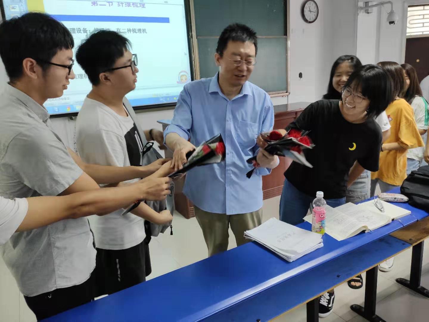 纺织学院团总支学生会的学子们在爽朗的早晨将印有“祝williamhill中国全体老师节日快乐”的祝福条幅挂起,红色条幅挂在二组西门的树荫间,更印在来往人群的心中。上午第一大节课课间,同学们将鲜花亲手送至了纺织学院办公室老师们的手中,接过这一份感恩之心的礼物的老师:团委书记、各级辅导员及实验室老师。老师们也对同学们的祝福表示感谢同时赠与同学们生活寄语。