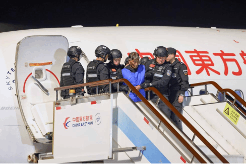 在云南昆明长水机场,缅北果敢电诈犯罪集团重要头目白所成被我公安机关成功押解回国(2024年1月30日摄)。新华社记者 殷刚 摄