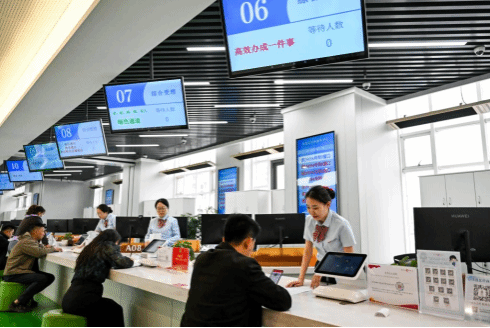 在内蒙古鄂尔多斯市东胜区政务服务中心,工作人员办理民营企业相关业务(2025年4月16日摄)。新华社记者 李志鹏 摄