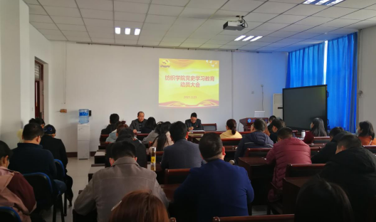 为贯彻落实中央关于在全党开展党史学习教育的重大决策部署,3月23日下午,纺织学院在2号组团楼202会议室召开党史学习教育动员大会。会议由赵文武副书记主持,刘伟书记在会上做动员讲话,全体党员参加了会议。