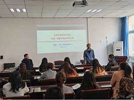 图3 王坤博士为我院师生做安全教育培训 图4 实验室教师开展实验室安全培训学习