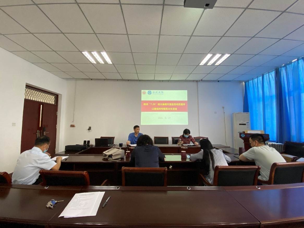 5月27日,纺织学院领导班子在龙湖校区召开关于深刻汲取“7.20”特大暴雨灾害追责问责案件教训以案促改专题民主生活会。会议由党委书记杨磊主持,院长杨红英、副书记杨方超、副院长郭正、副院长陈彩虹、副院长卢士艳参加了会议。