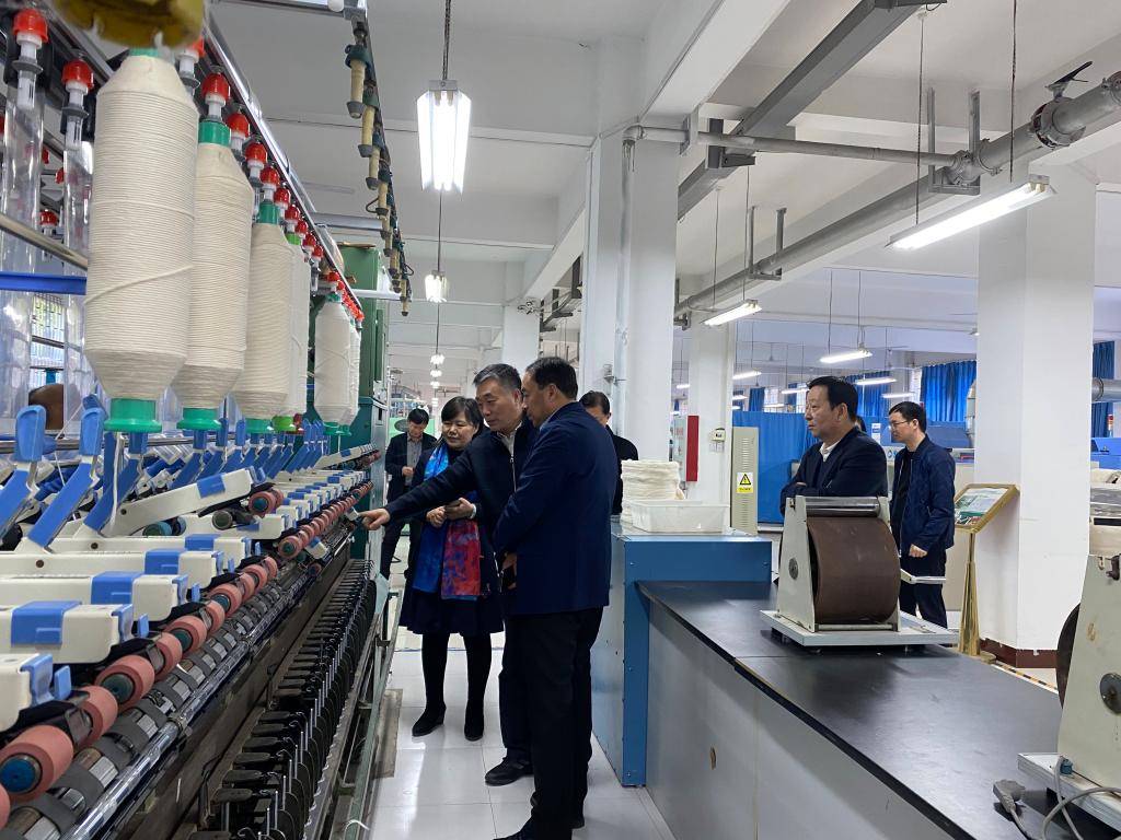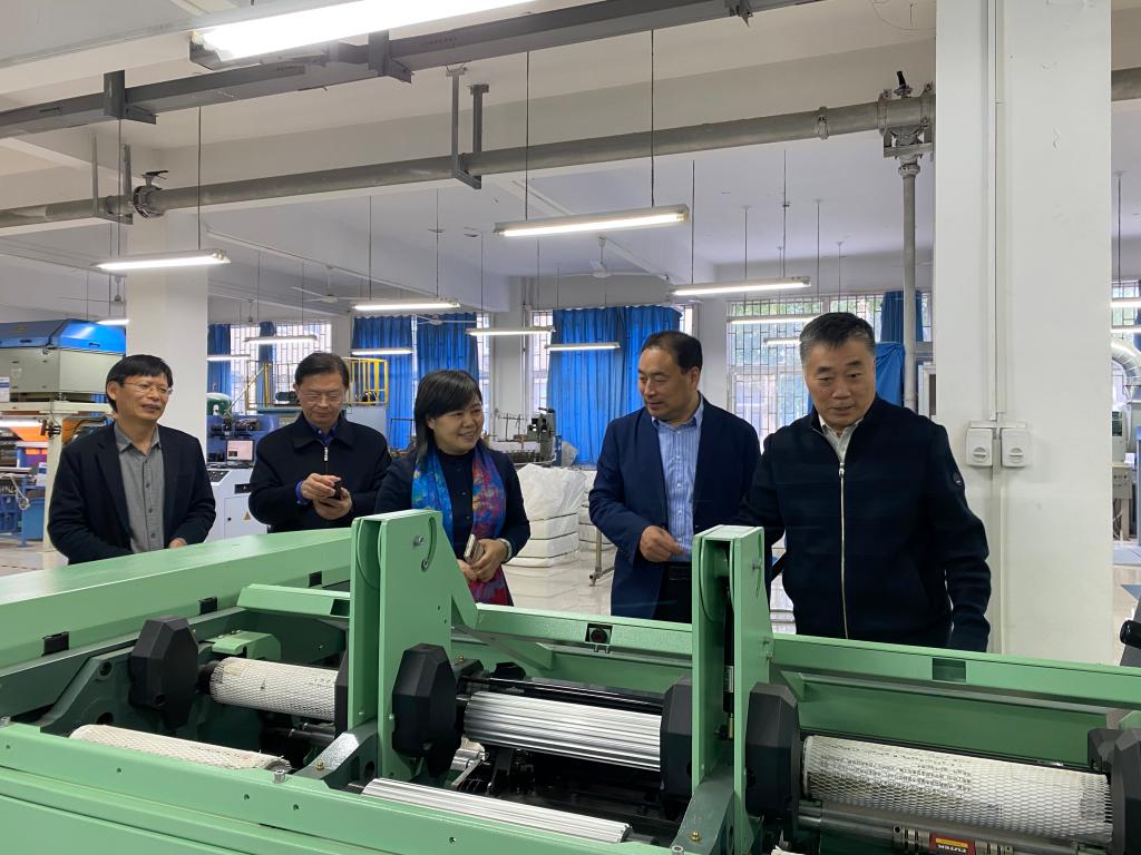 座谈会结束,任家智教授带着一行人参观了我院纺织工程实验室的清梳联系统、数字化精梳机、多功能细纱机等纺织全流程加工装备,在多纤维精梳混纺关键技术、新型纺纱技术与面料产品开发等领域开展交流。