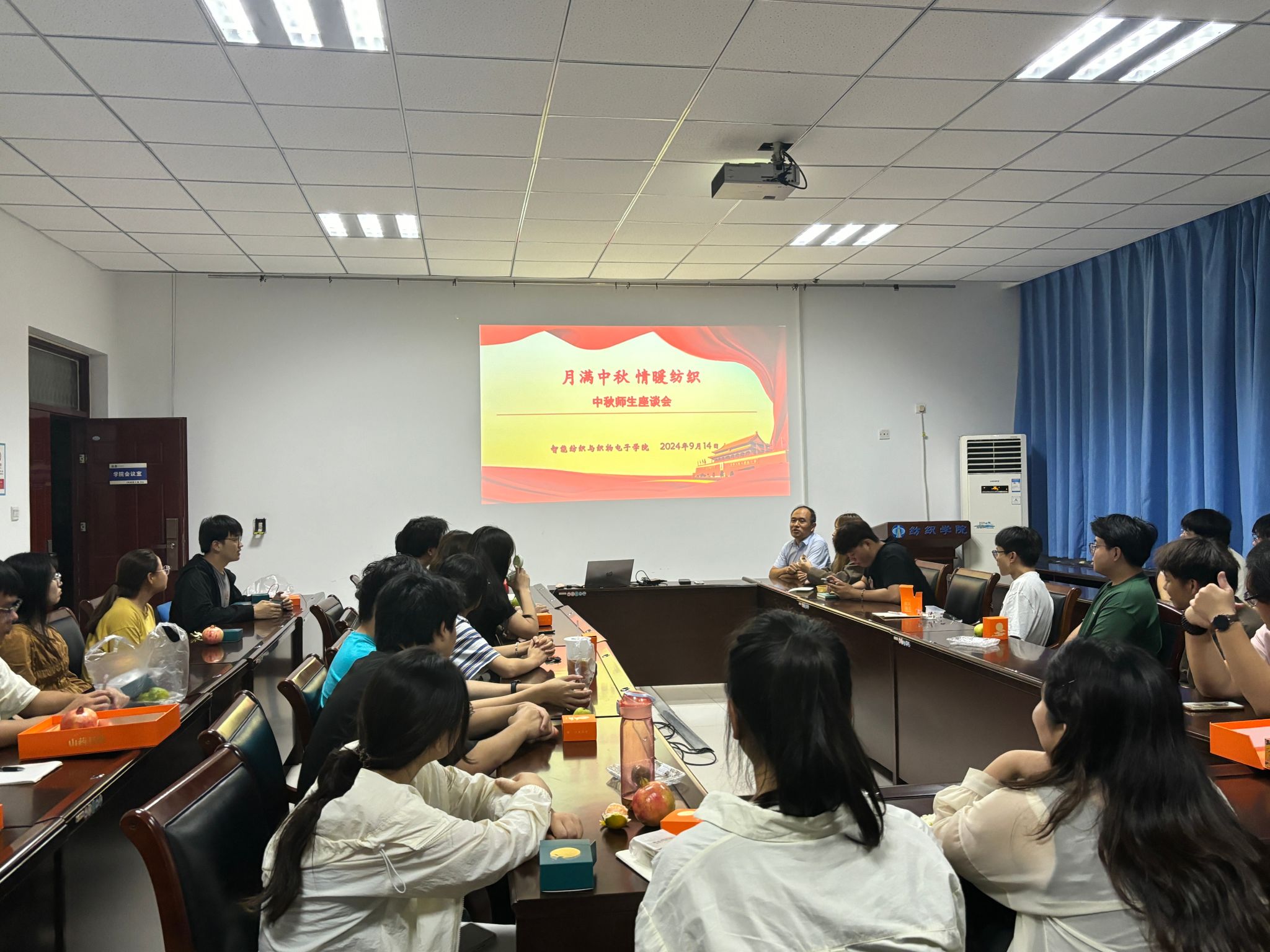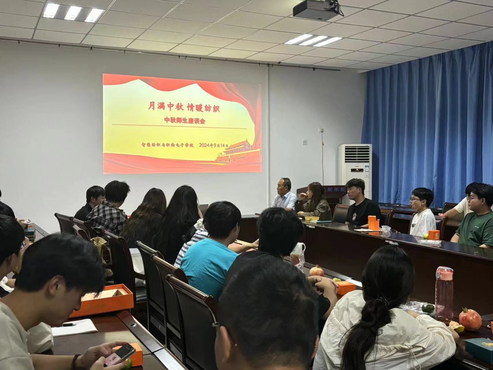 为迎接中秋佳节的到来,让在校学生感受幸福团圆的节日氛围以及学院老师们的暖心关怀。9月14日,学院党委副书记杨方超,辅导员杨继枝、杨娟娟、张丹丹纷纷以深入学生宿舍、召开中秋佳节师生座谈会等形式,慰问关怀中秋节未回家学生。