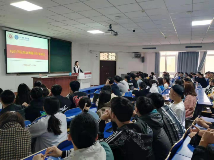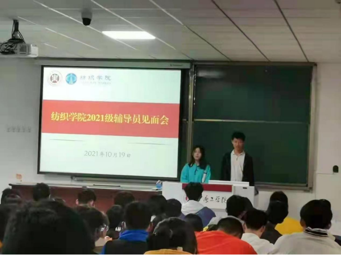为增强辅导员与新生的熟悉了解,助力2021级新生更好地融入大学生活,我院于2021年10月19日下午14:00至15:30在四号教学楼201教室召开2021级辅导员与新生见面会。参会人员有21级辅导员张丹丹老师、纺织学院21级全体新生、各班班助、院学工办及团总支学生会代表。