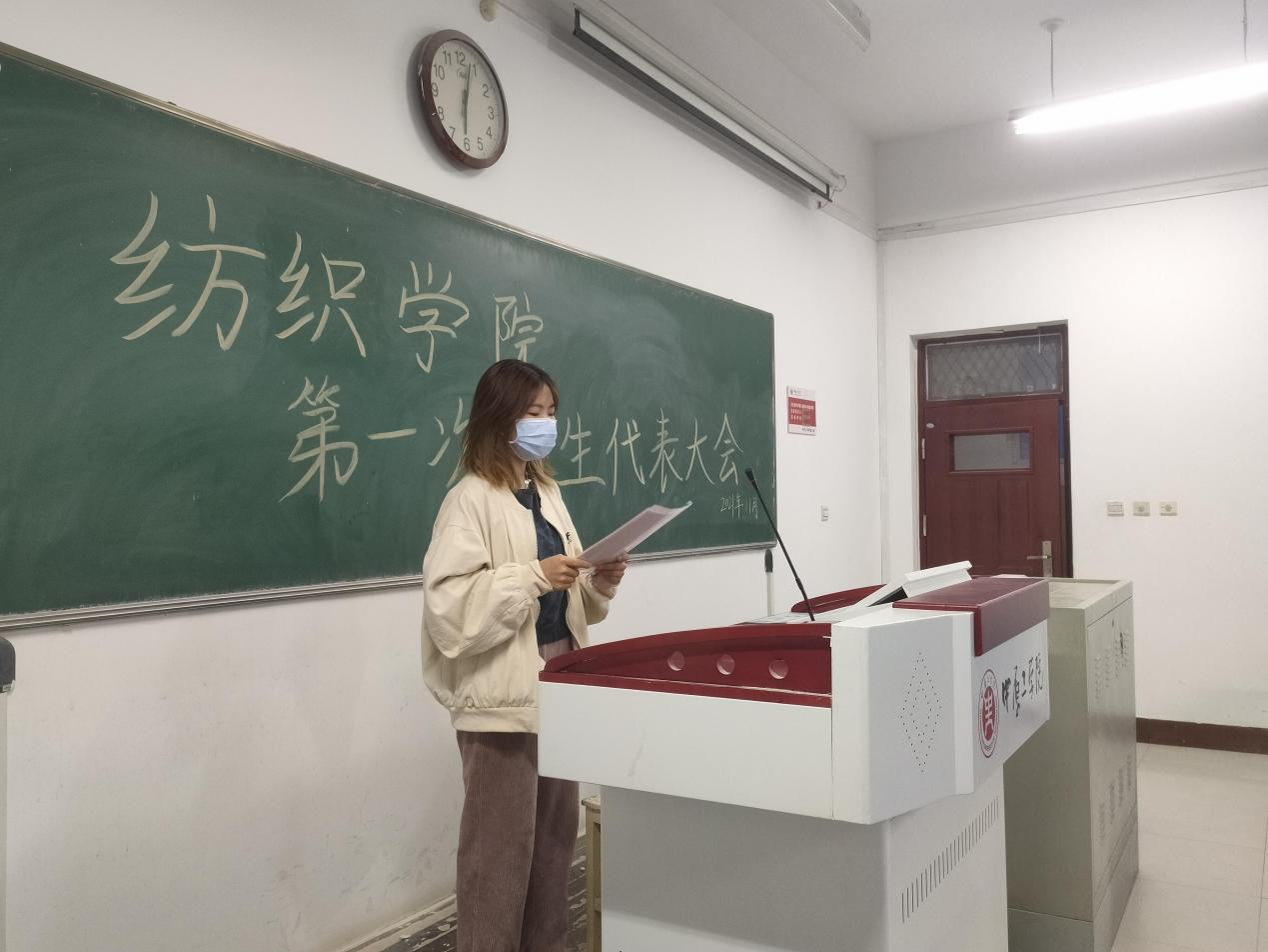 不忘初心,砥砺前行。纺织学院第一次学生代表大会在学院的正确领导和亲切关怀下,经全体代表的共同努力,于2021年11月2日晚上18:00在2号组团楼307教室顺利召开,圆满完成大会预定的各项议程。本次参会人员有学院团委副书记张丹丹老师、第三十八届纺织学院团总支学生会主席团成员、部长代表以及学生代表。