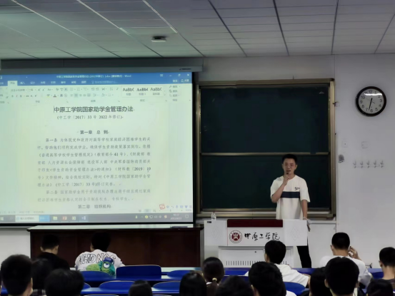 2022年9月30日下午16:00纺织学院在四号教学楼101教室召开了2022级本科新生资助政策宣讲会,本次会议由王腾老师主持并进行宣讲。