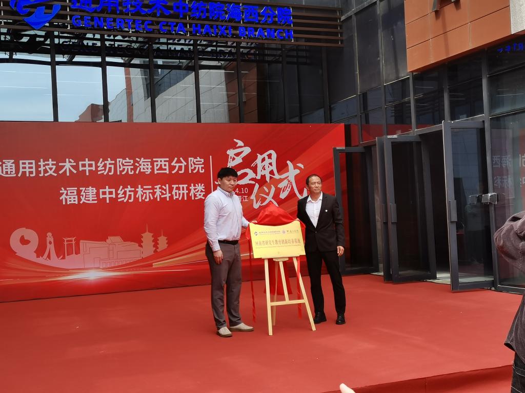 为进一步深化校企合作,提高人才培养质量,2024年4月10日,纺织学院与通用技术中纺院海西分院、福建中纺标分公司于福建中纺标科研大楼(晋江)举行了就业实习基地、研究生创新培养基地共建签约仪式。通用技术中纺院海西分院副院长李军、福建中纺标分公司总经理施点望与纺织学院轻化工程系博士副教授黄鑫、纺织学院党委副书记杨方超出席了签约、揭牌仪式。