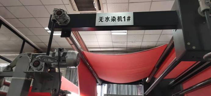 借此机会,实践团队下午还去参观了浙江乐高实业股份有限公司,重点参观了国内现有的高级纺织印染技术——无水印染。该技术工艺中,无水染缸是目前世界上最先进、自动化程度最高、最节能环保的印染设备,但成本昂贵,国内还未普及。因此,国内的印染废水处理仍无法避免,还亟需更有效、快捷和低成本的处理技术。